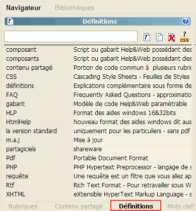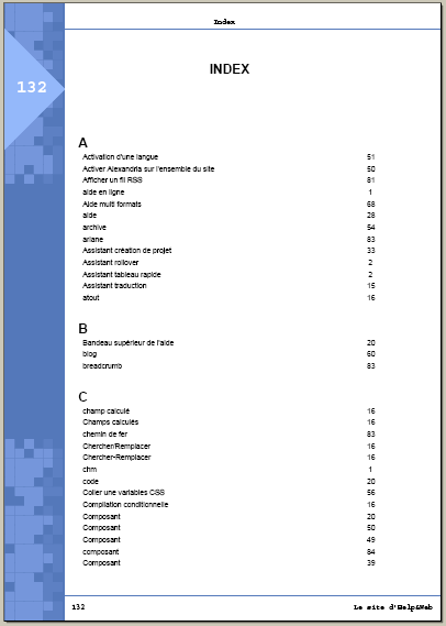 En plus de tables des matières une bonne documentation ce doit d'avoir un glossaire et un index, là encore Help&Web vous offre des facilités.