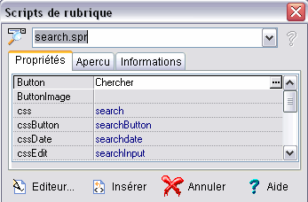 Propriétés Search